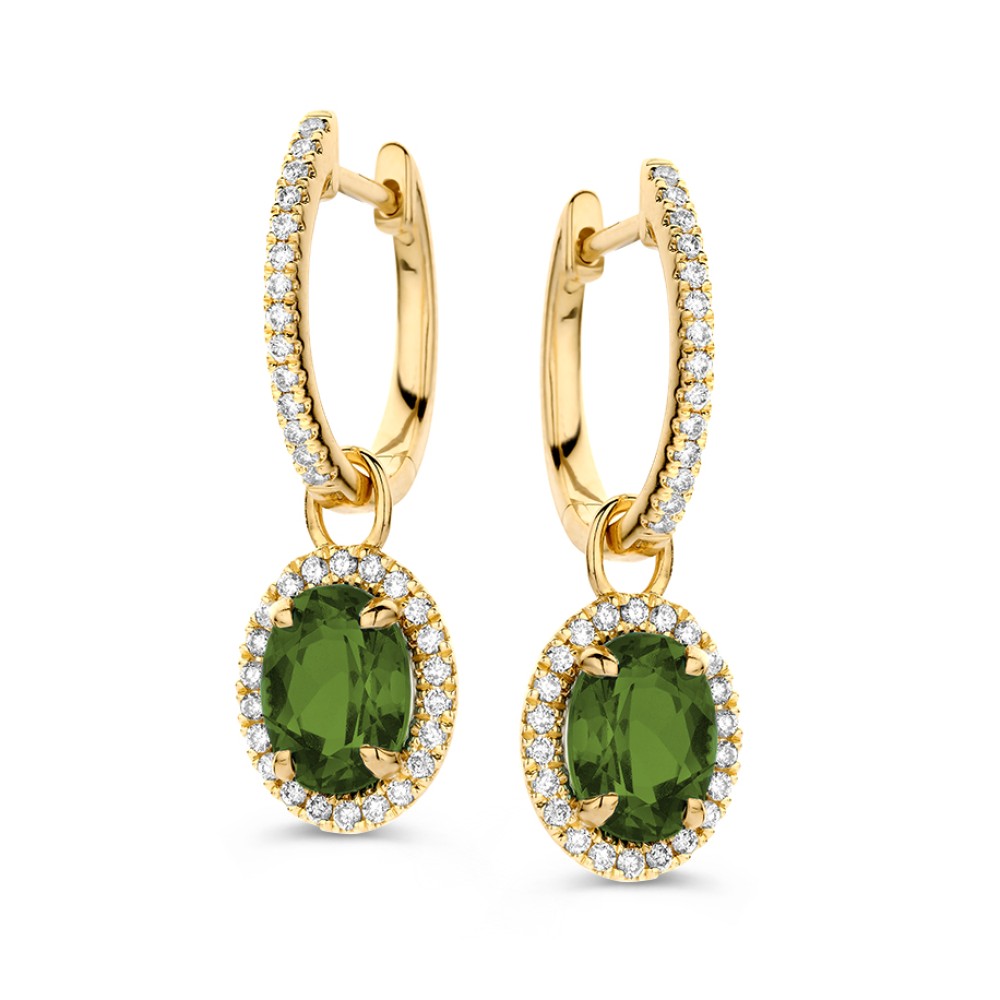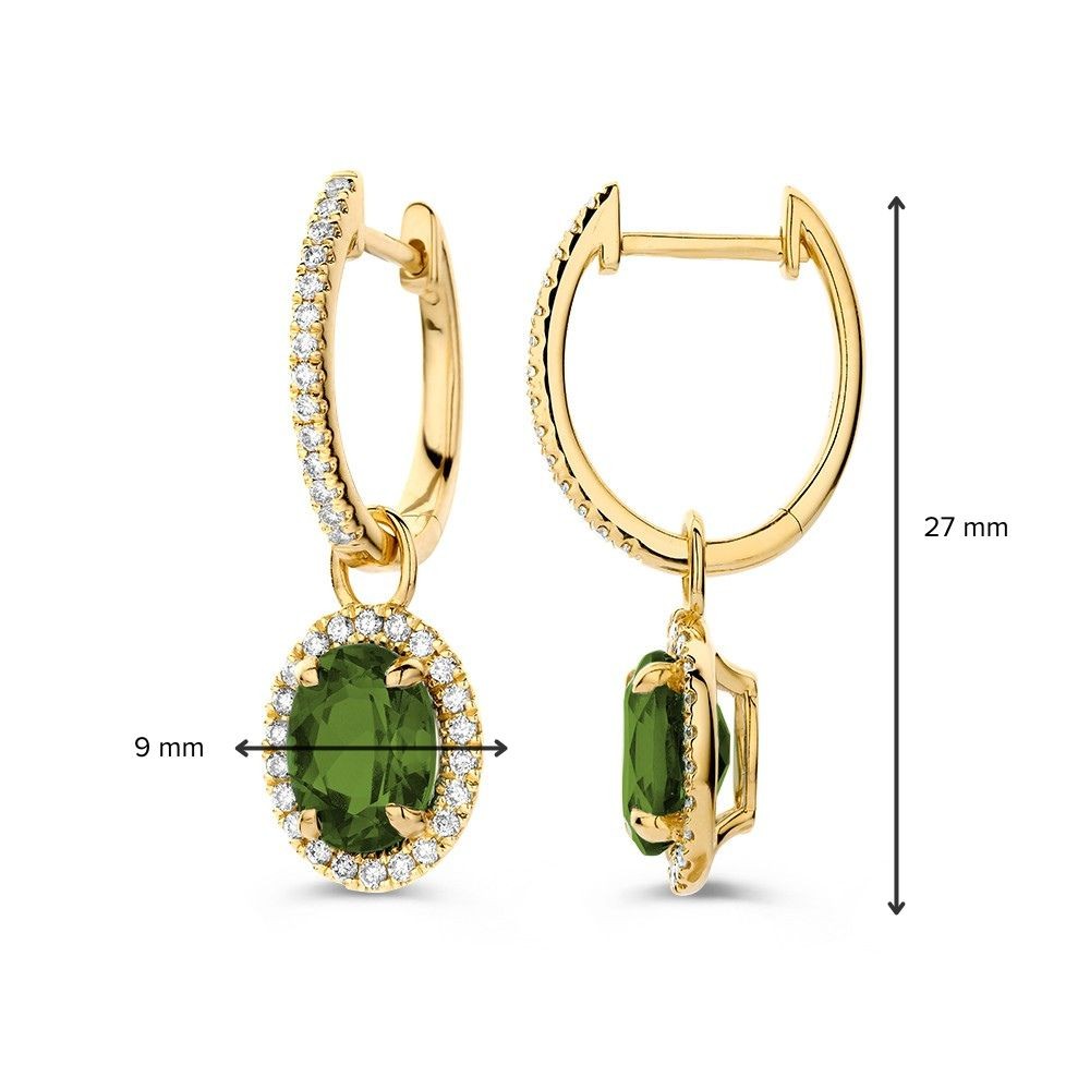 14 krt Oorringen geelgoud groene toermalijn + briljant