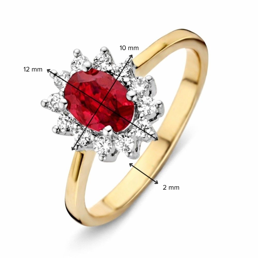 14 krt Ring bicolor briljant + robijn