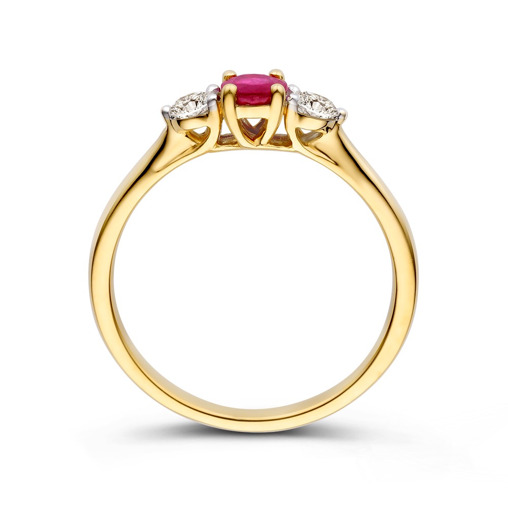 14 krt gouden Ring geelgoud briljant + robijn