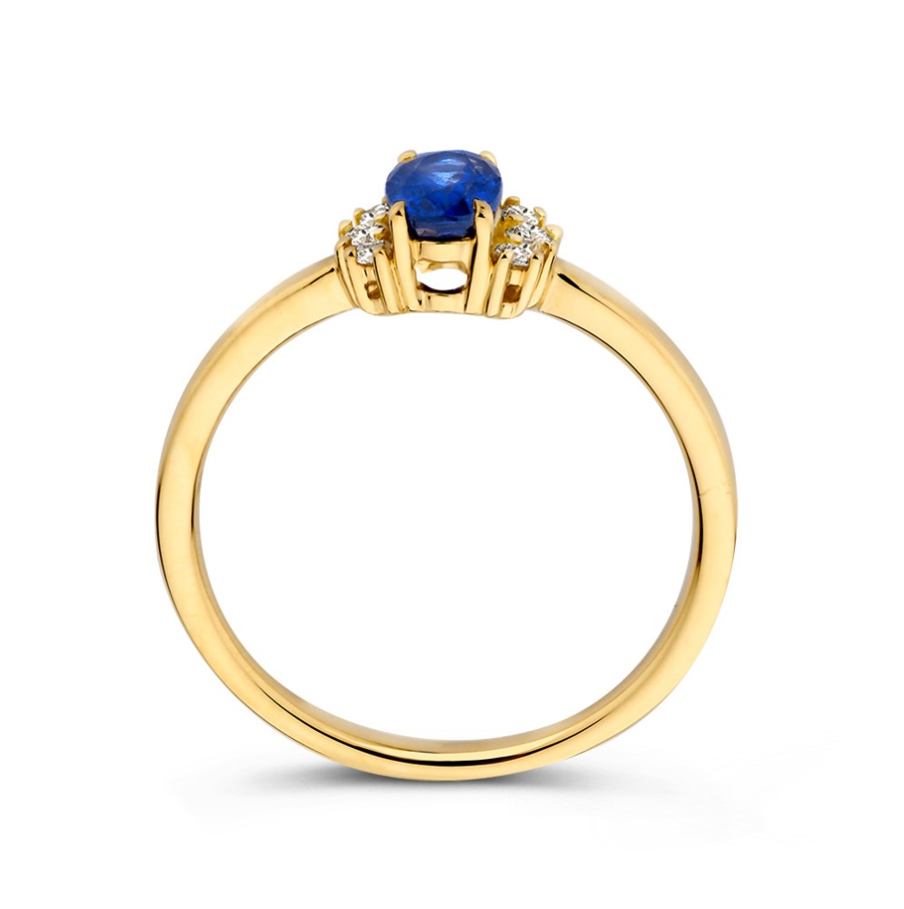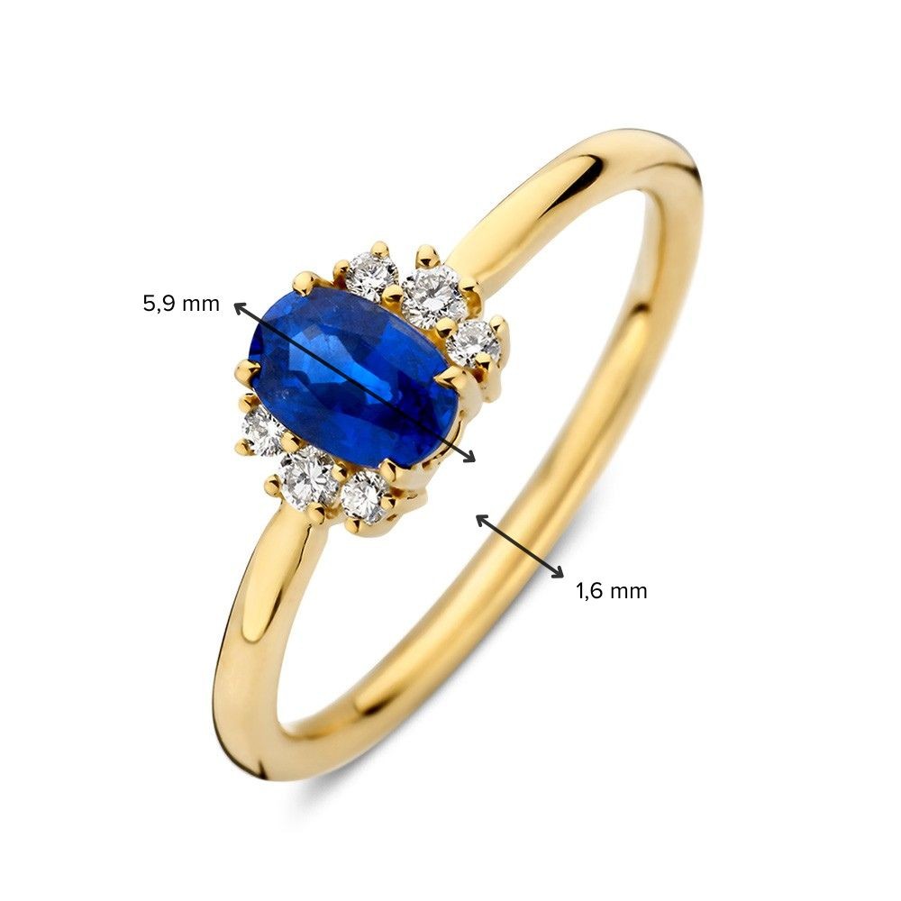 14 krt Ring geelgoud briljant + saffier