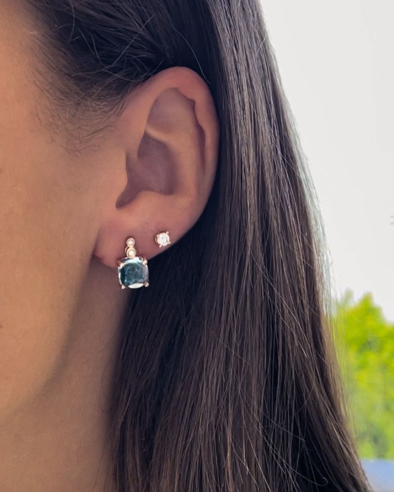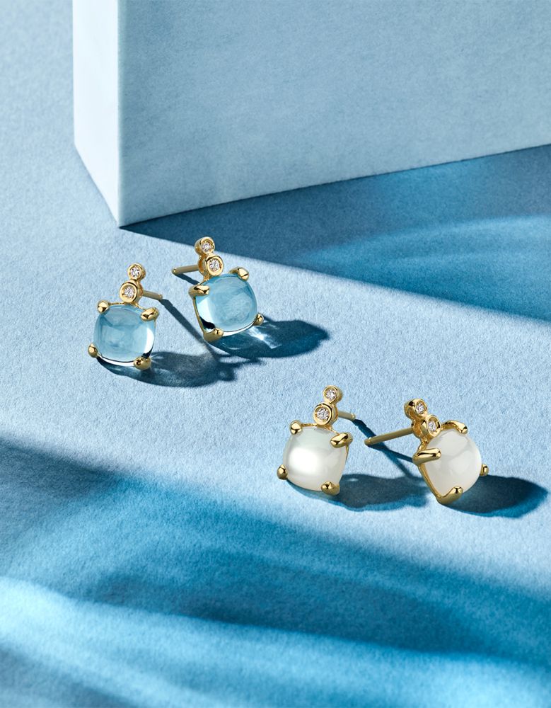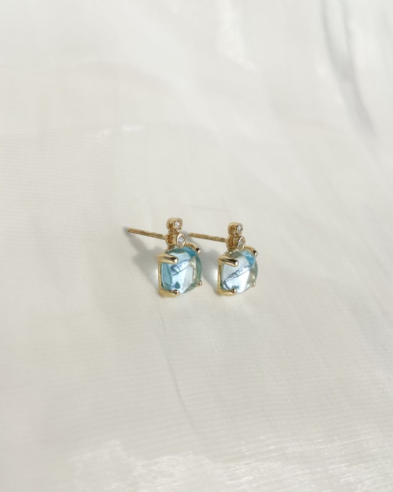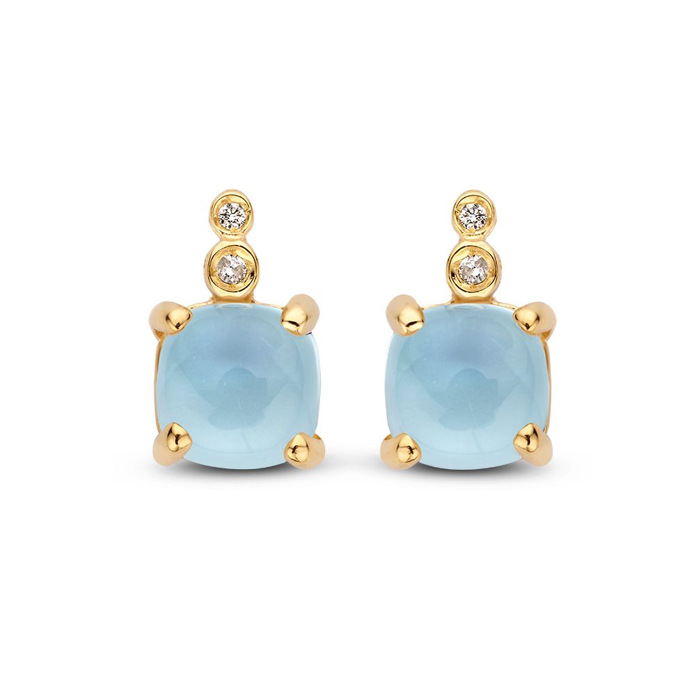 14 krt Oorstekers geelgoud topaas+briljant