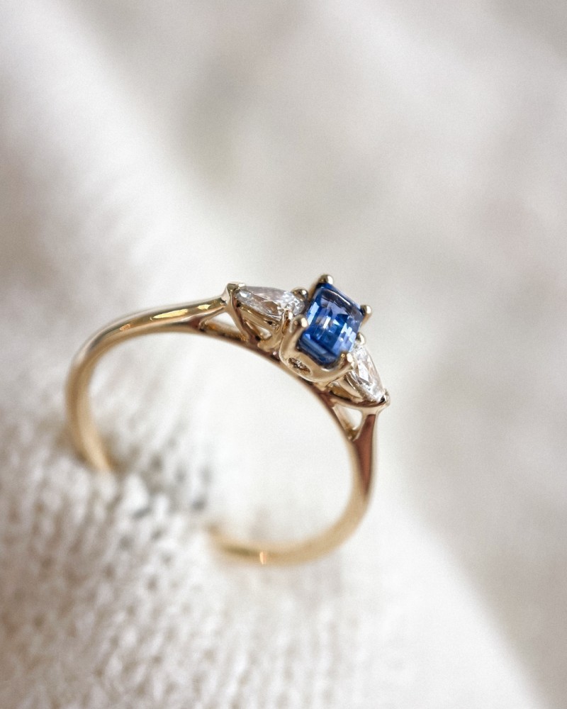 14 krt gouden Ring geelgoud briljant + saffier